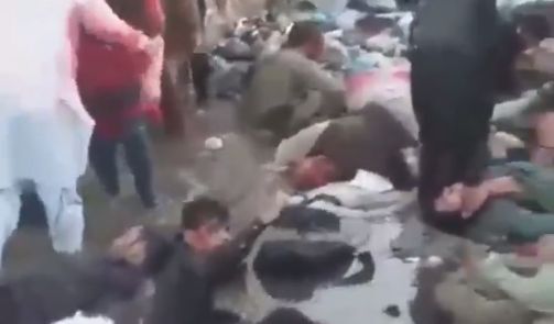 One sustained burst of about 17 gunshots comes just over 30 seconds after the bomb detonates, according to the video, with the other 10 bursts of two to three rounds each. At no point are Marines seen firing on camera or is anyone visibly hit by gunfire. It is unclear where the gunmen are or what they are firing at.