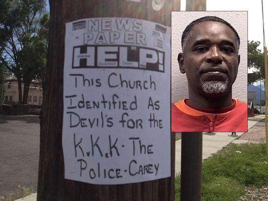 Isn’t it amazing how the sodomites and the Muslims have engaged in fake hate crimes? Well it isn’t just among those who choose their perversion of sexual behavior or their demonic tenants anymore. No, now we’re seeing more faked crimes by those who want to play the victim and the latest is a 44-year-old man from Colorado Springs who left a disturbing message outside a predominantly black church.