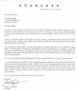 In 2015 Mr. Halbig sent a series of photographs of two girls to an expert forensic analyst in Texas. This particular expert had over 28 years of experience and had worked with federal government agencies on certain occasions.