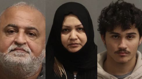 A mother, dad and son were arrested after officers responded to a welfare check to find a juvenile who appeared to be “cut haphazardly” with lumps on his face.