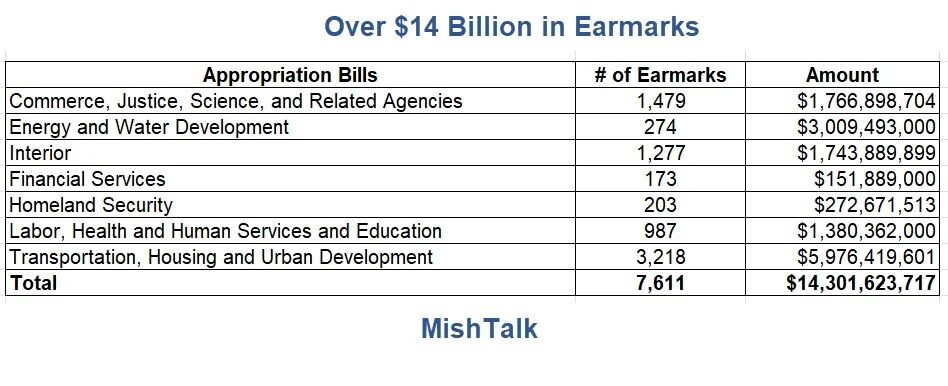 - EARMARK LIST. Of course, the Congress makes it nearly impossible to give you a nice list of earmarks. Thankfully, the National Taxpayers Union Federation spent the time to put together an Excel spreadsheet of the 7,611 earmarks in the 2026 funding bills.