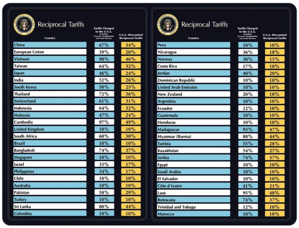 The White House has released a list of the tariff rates that will be imposed on various nations around the world.  In many cases, we will be imposing a tariff rate that is half as high as other countries are imposing on us…
