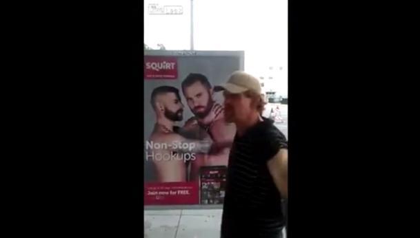 Homosexuals placed up homosexual imagery in plain view sight for children and others to see. Well, one righteous American marine was so nobly angry that he took a rock and smashed it, he then took the disgusting poster and threw it to the street. Here is the video, with my own entertaining commentary: